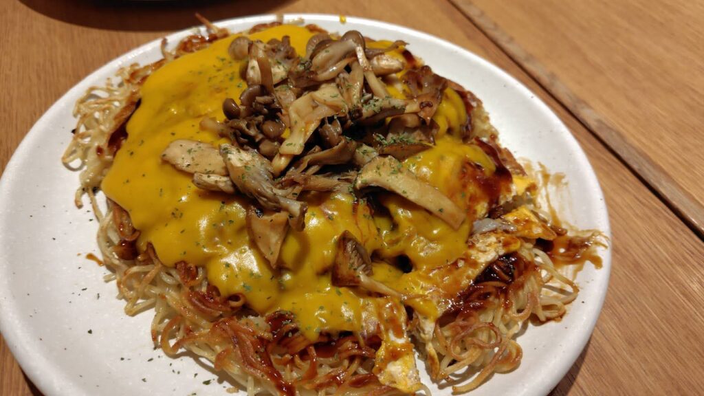 そこそこ大食いな自覚のある私ですが、自分が頼んだ通常サイズのお好み焼き(と夫が食べきれなかった分)でお腹がいっぱい。夫もよく食べる方ですが、さすがに麺2倍だとなかなかのボリュームだったようです。