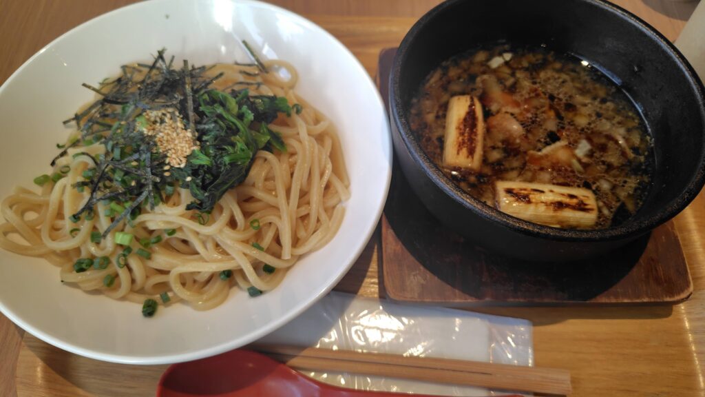 季節限定の鴨だしつけ麺(1,300円)をオーダー。ネギが香ばしく、とても美味しかったです。