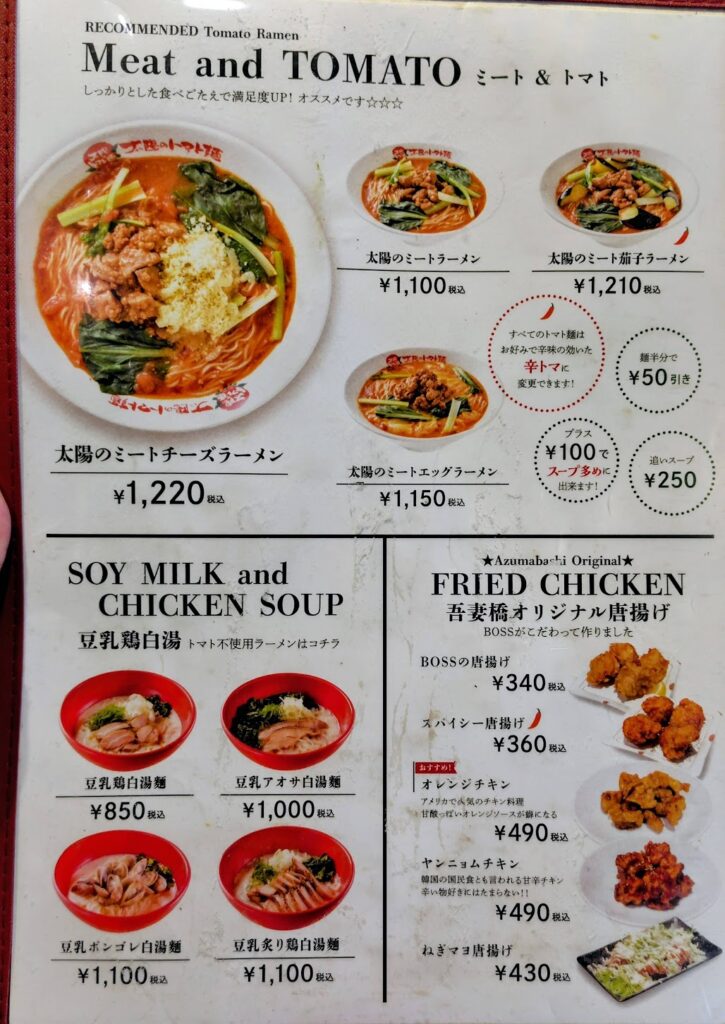 ヘルシー系ラーメンの代表みたいなお店ですが、実は味の満足度も高くて私のお気に入り。今回は、そんな太陽のトマト麺で食べたメニューをレビューします。